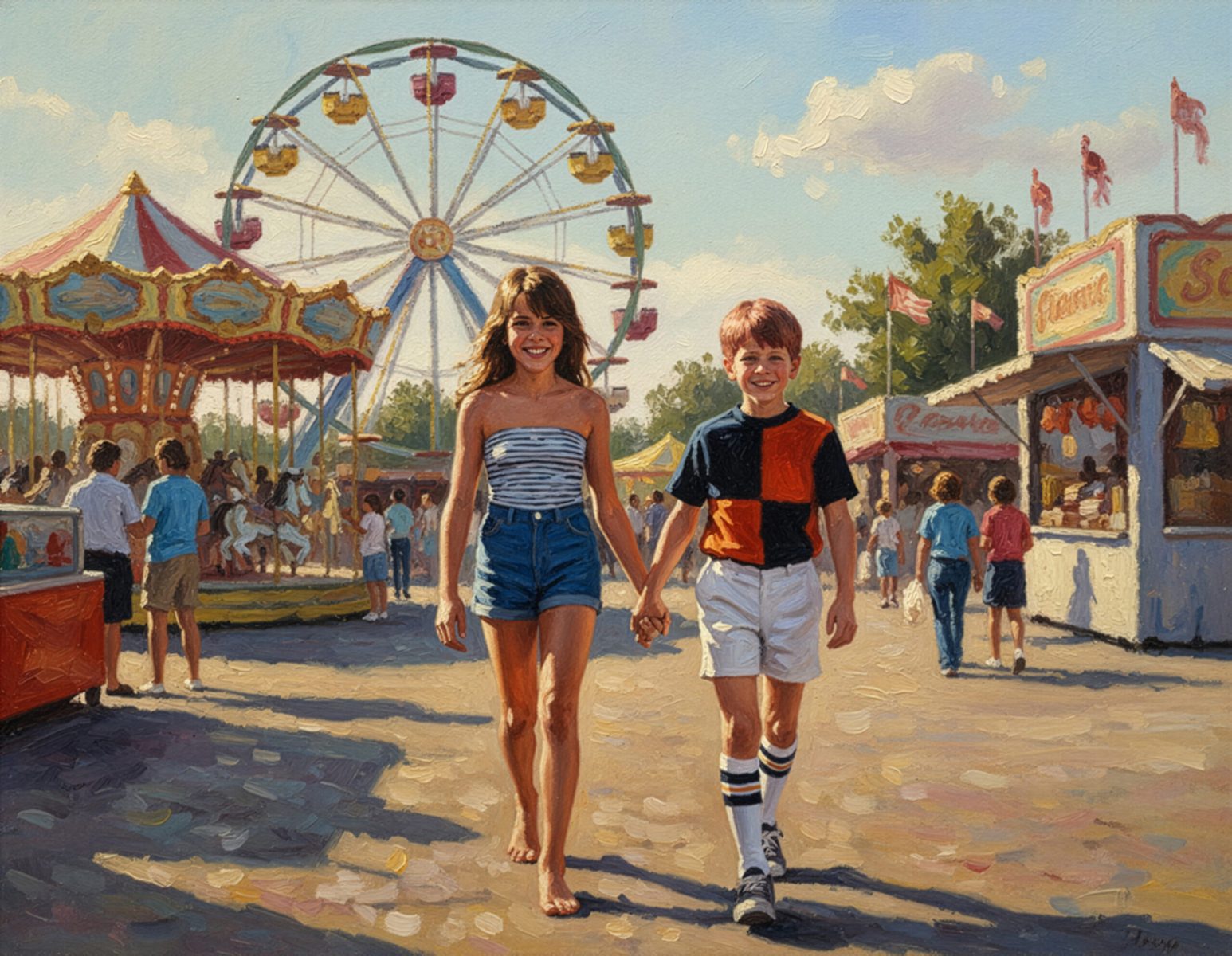 This last set I call “revisualist history” or “untaken photos.” Ordered chronologically, most are photorealistic, and no existing backgrounds were kept. I described environments from memory and generated most people from small B&W yearbook headshots or VHS screenshots. The sentiment each image evokes is accurate even when details are conflated. These of course require much more detailed instructions.