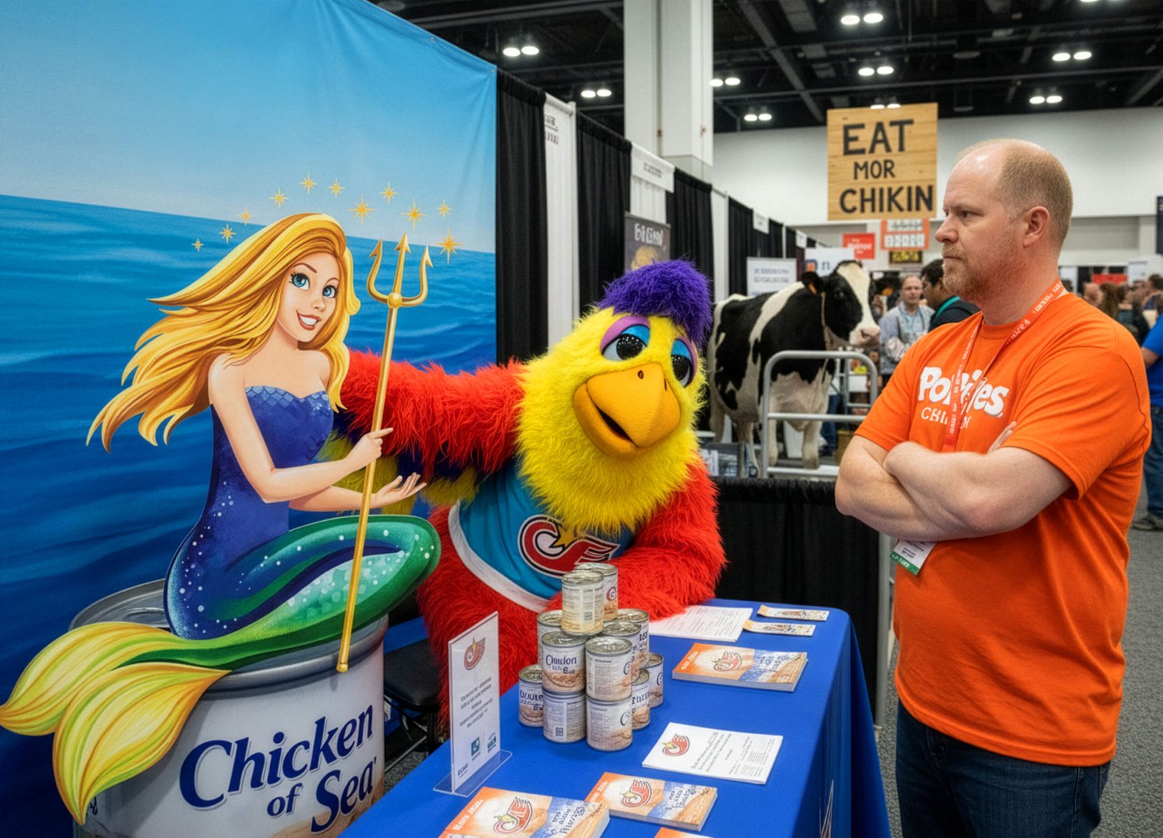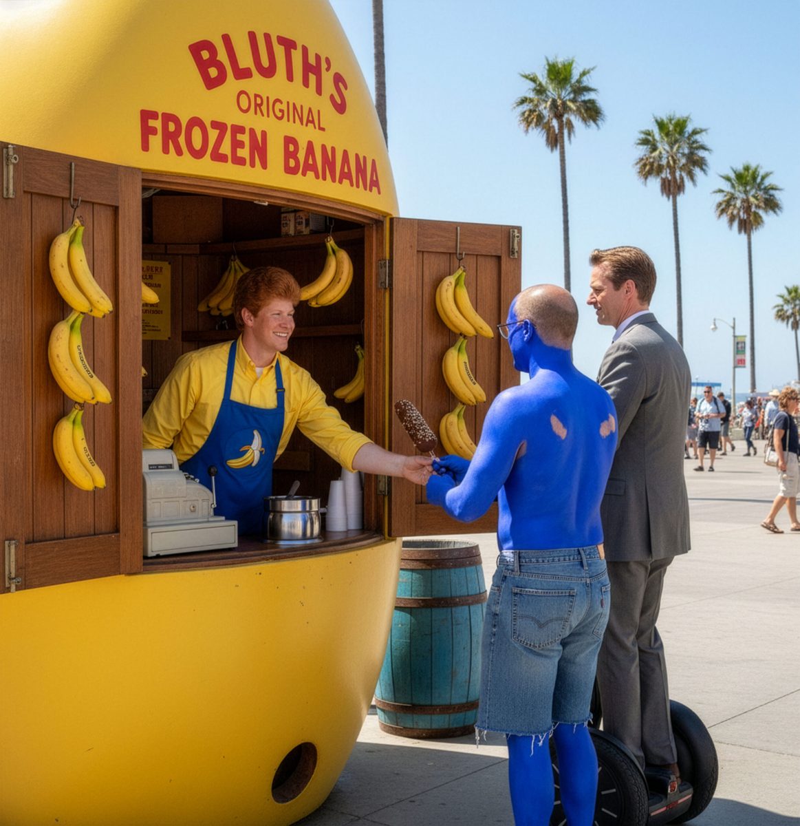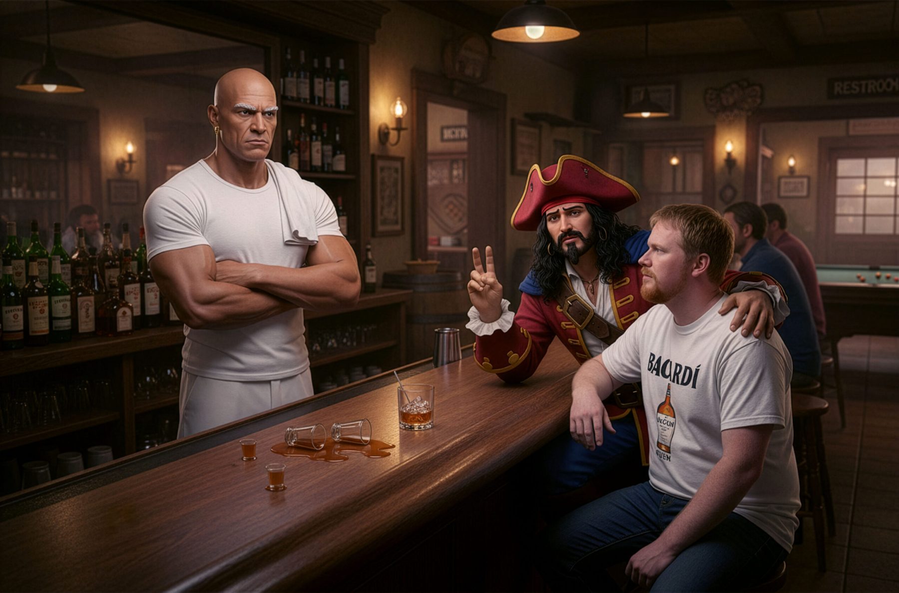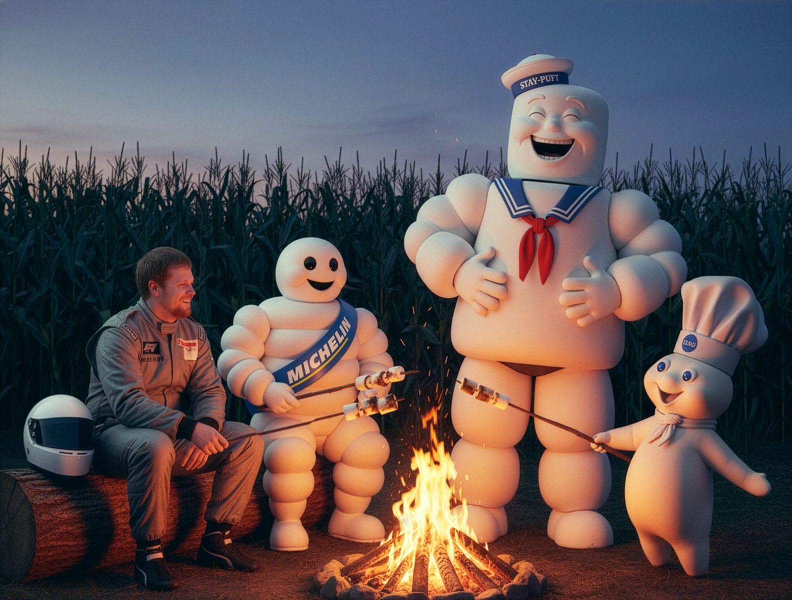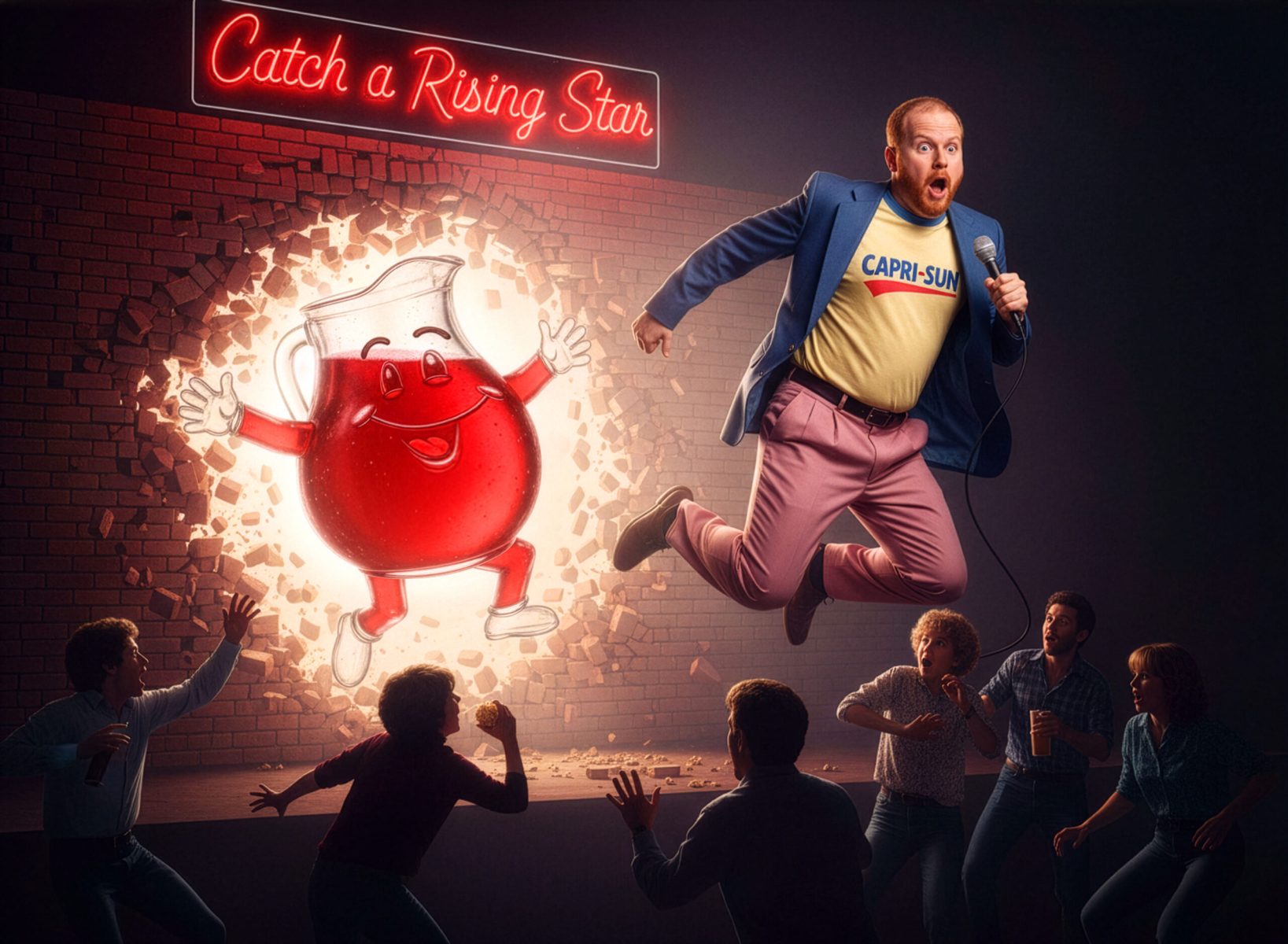 Since the novelty of achieving looks faded, I’ve focused on more creative scenarios, first replacing backgrounds for amusement or irony, posing people, and changing their clothes, a la Robot Chicken. I’ve especially enjoyed bringing illustrated characters like brand mascots to life. Photographic experience helps me craft more compelling images through composition, re-lighting, and point of view. Some results in this next gallery hold up as their own works, making them a bit like memes. (They also didn’t fit my other categories.)