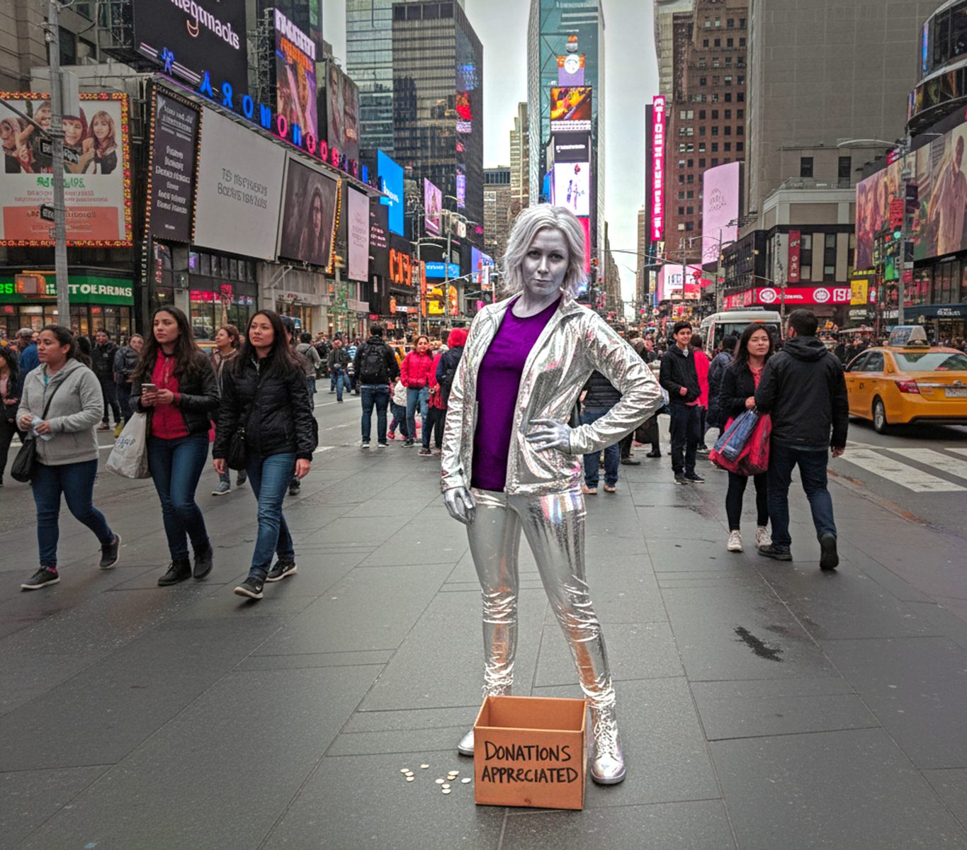 Since the novelty of achieving looks faded, I’ve focused on more creative scenarios, first replacing backgrounds for amusement or irony, posing people, and changing their clothes, a la Robot Chicken. I’ve especially enjoyed bringing illustrated characters like brand mascots to life. Photographic experience helps me craft more compelling images through composition, re-lighting, and point of view. Some results in this next gallery hold up as their own works, making them a bit like memes. (They also didn’t fit my other categories.)